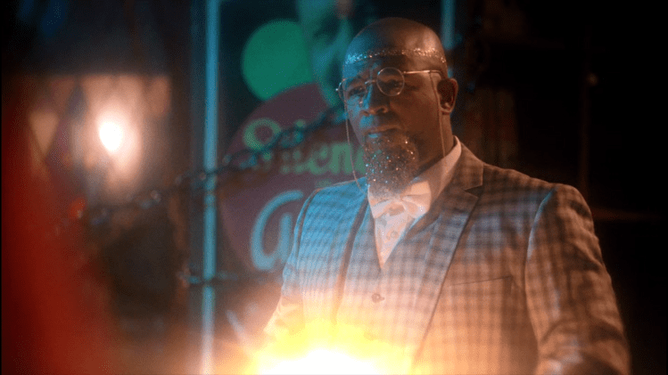 Following John’s absolution, Lucifer has began a campaign to go to war with Heaven, sending back trains of sinners and in the words of God “playing his damned music loudly like an impudent teenager.” Hence, He sends his number one, the Agent (played by Rent‘s Adam Pascal) to sort him out. As this happens, Ms Merrywood, played by Evigan as the only returning sinner, finds herself in Heaven as one of the damned, being questioned over a horseshoe brooch she found. Meanwhile in Hell, the Ticket Keeper has taken over the main running of the Carnival while Lucifer has gone into recluse, seemingly making no effort to act any further against Heaven. Instead he reads a fable to a cloaked figure, a reworking of The Ass and the Lap Dog, turning the donkey into a filly. Through this conceit, we learn the backstory of the Painted Doll, who was a former Applicant to Heaven, and consequently we see the inner workings of Heavenly Productions Inc. (How one incorporates Heaven is a question best left for another day.)